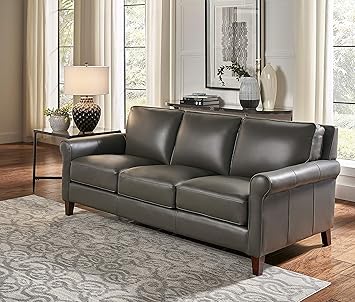Amazon Com Hydeline Newport 100 Leather Sofa Gray Kitchen Dining