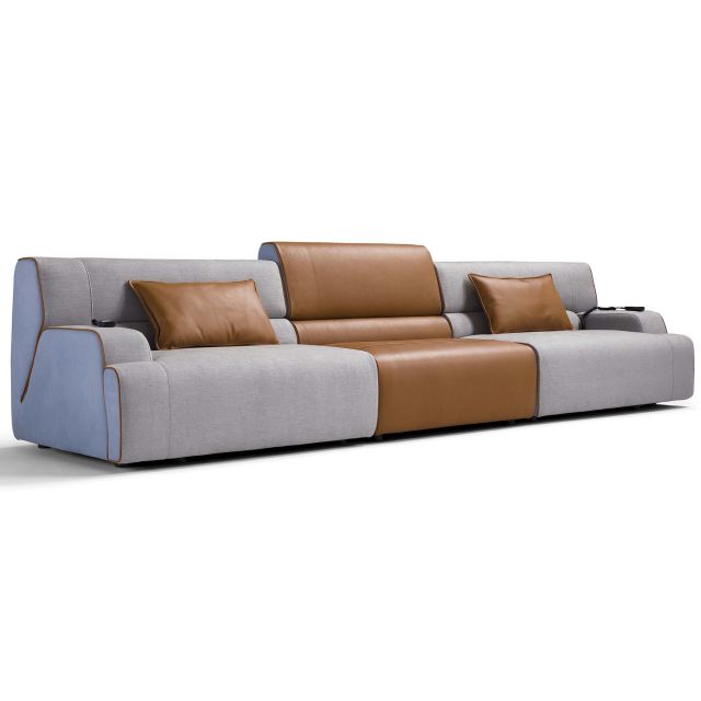 Egoitaliano Babouche 5 Seater Fabric Sofa With Leather Centre