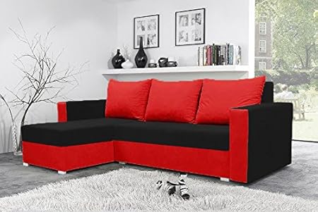 Mojito Corner Sofa Bed With Underneath Storage In Black And Red