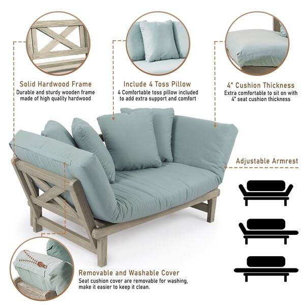 Outdoor Futon Convertible Sofa Daybed Deep Seating Adjustable