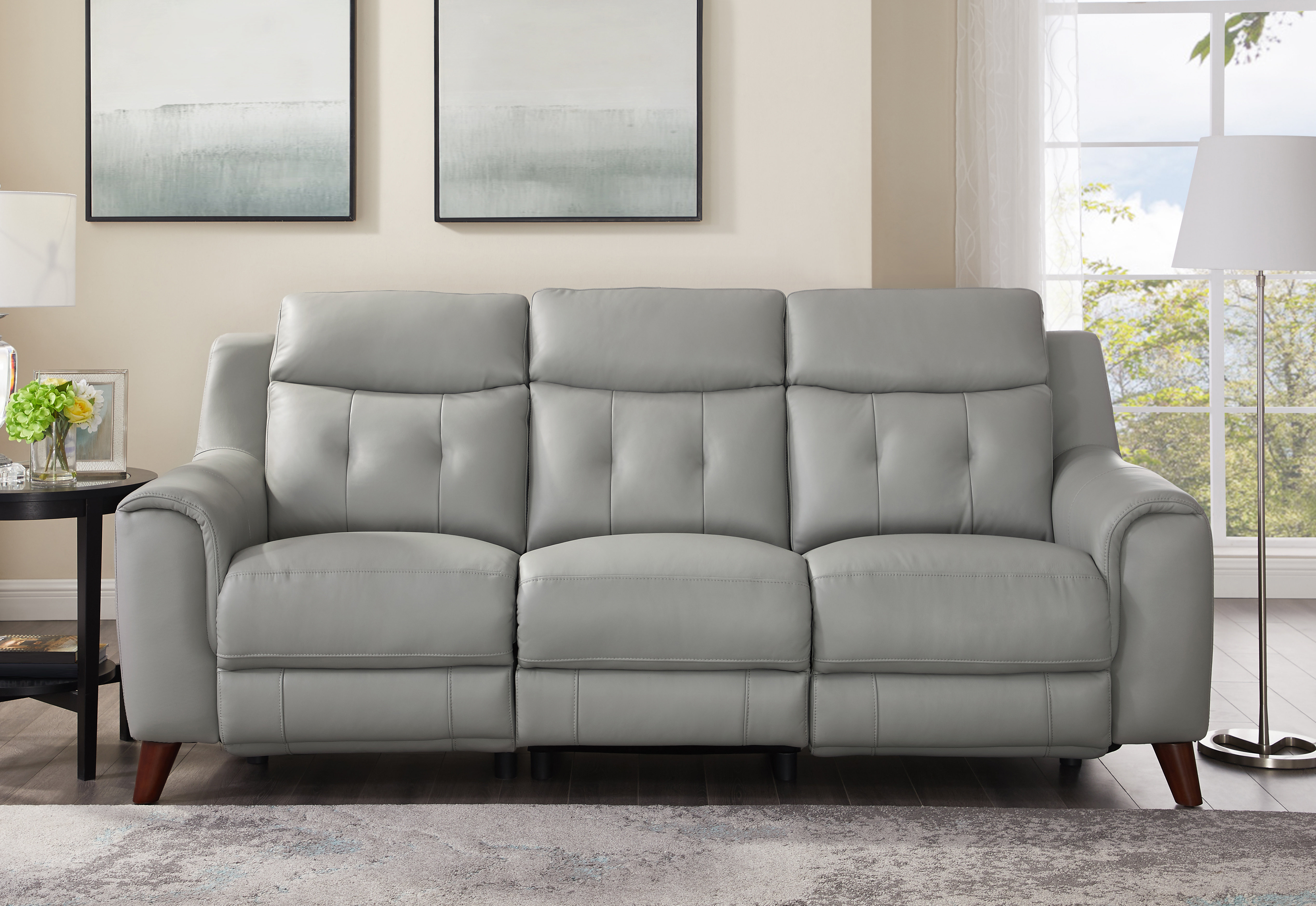 Lillyput Hattie Grey 3 Seater Leather Sofa Free Shipping