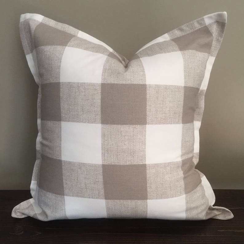 Tan Buffalo Check Throw Pillow Cover Neutral Farmhouse Gingham Etsy