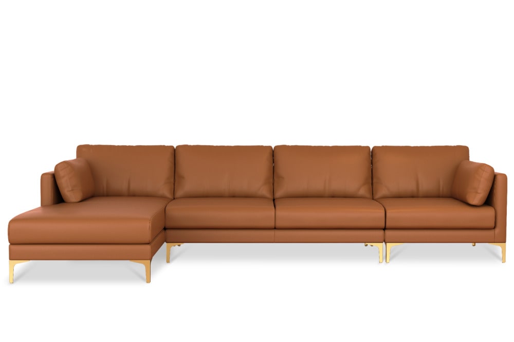 Adams Extended Chaise Sectional Sofa Leather Mocha Right Facing