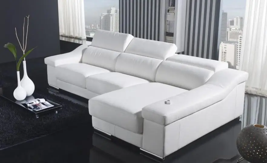 Living Room Furniture Minimalist L Shaped White Leather Sofa For