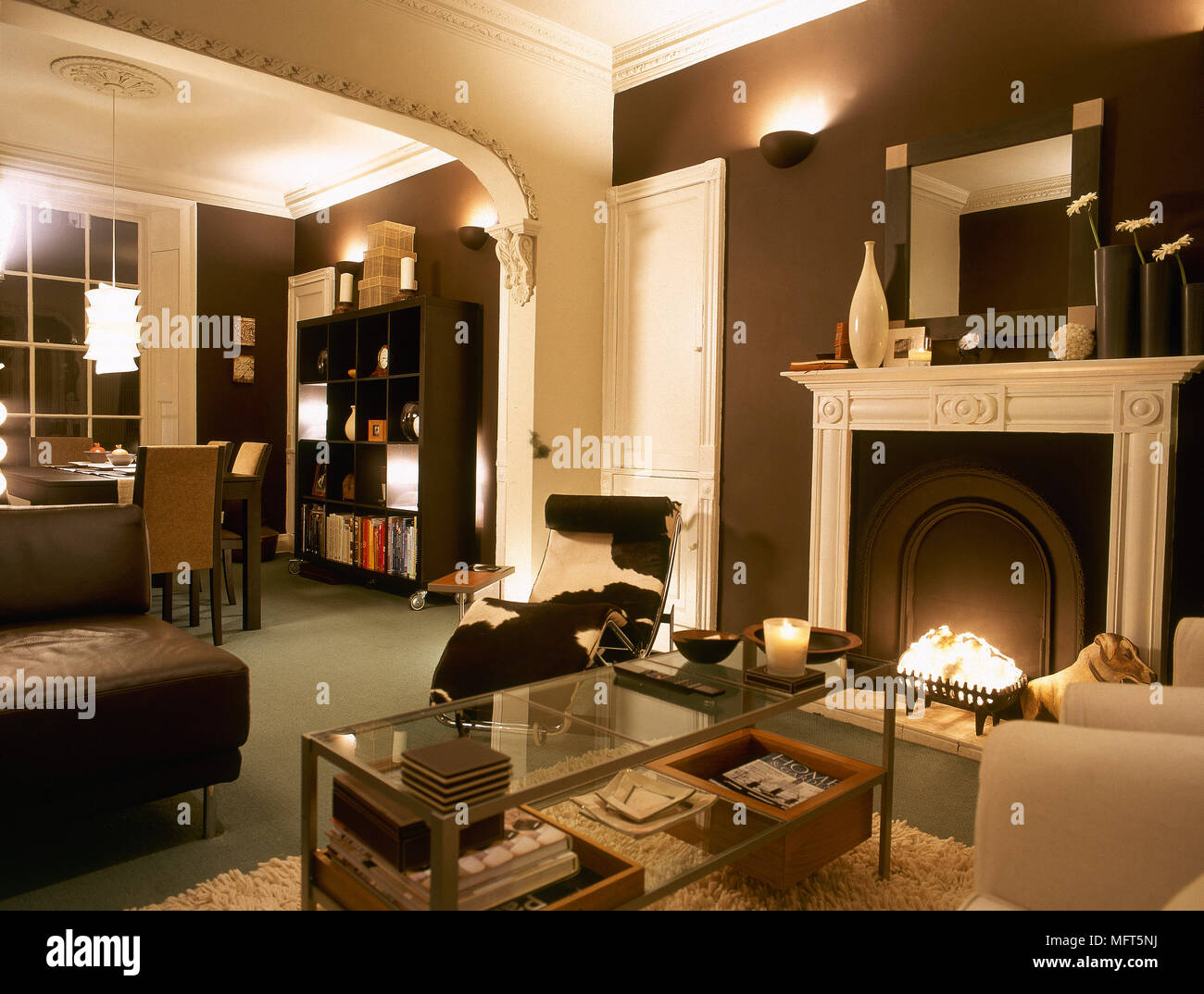 Ein Modernes Offenes Wohnzimmer Mit Essbereich Kamin Couchtisch