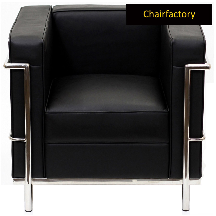 Florence Knoll Inspired Black Leather One Seater Sofa