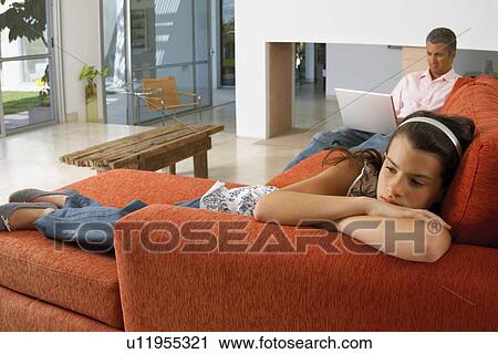 Woman Lying Down On Sofa Stock Photo 25262635 Alamy