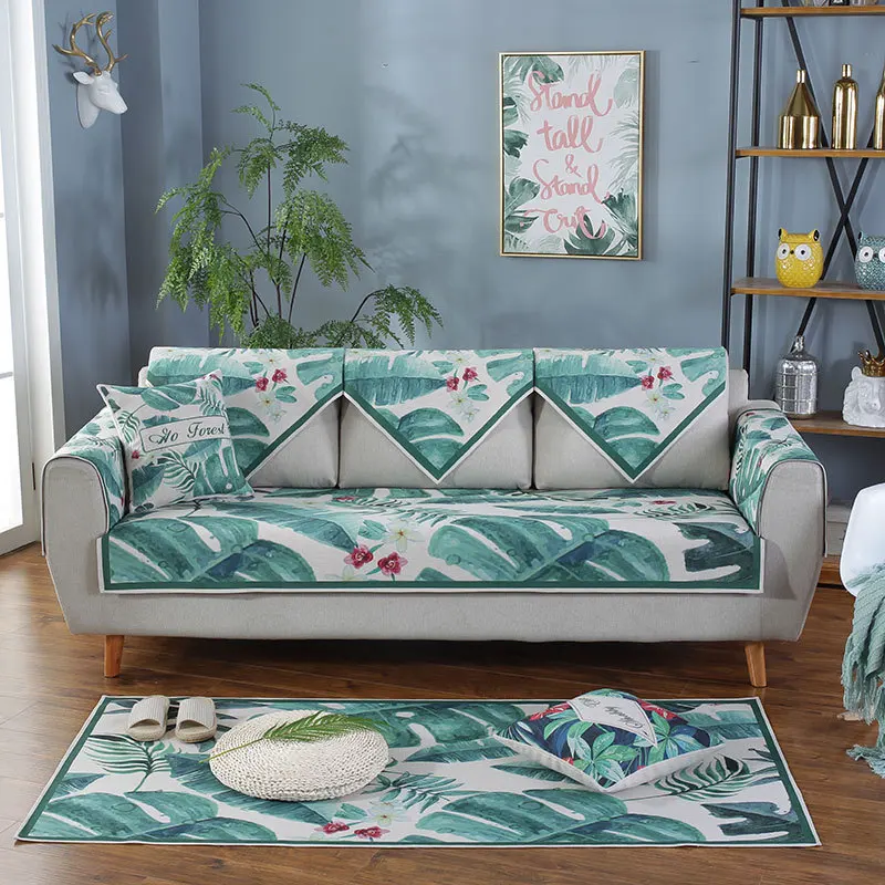 Yaapeet Print Linen Cotton Sofa Cover Living Room Slipcover