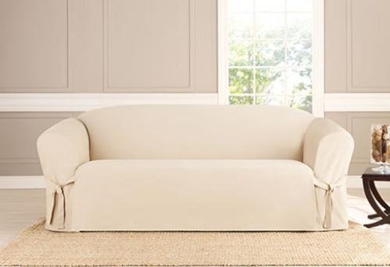 Natural Box Cushion Sofa Cotton Duck One Piece Slipcover Etsy