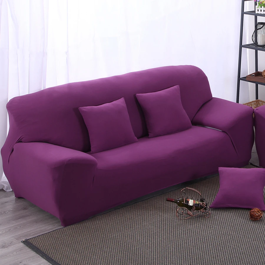 Pure Color Purple Sofa Cover Elastic Sofa Slipcover Stretch