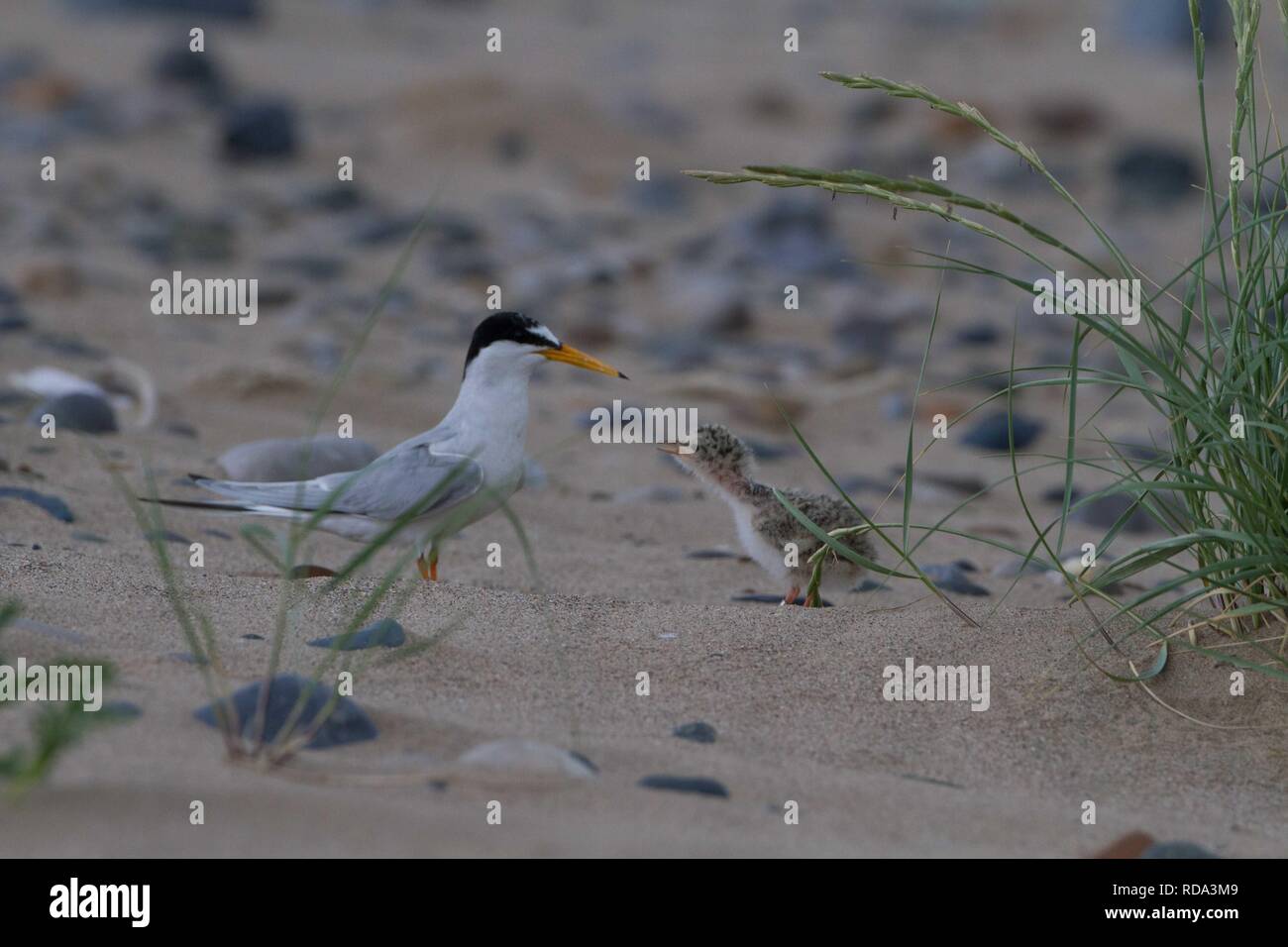 Little Tern Chick Sterna Albifrons Sheltering Amongst Sea