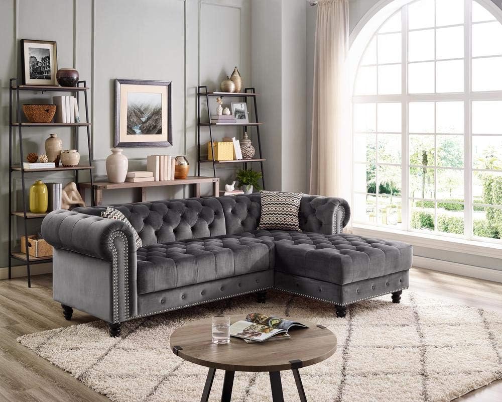 Velvet Tufted Sectional Sofa Sofa Design Sofa Navy Blue Tufted