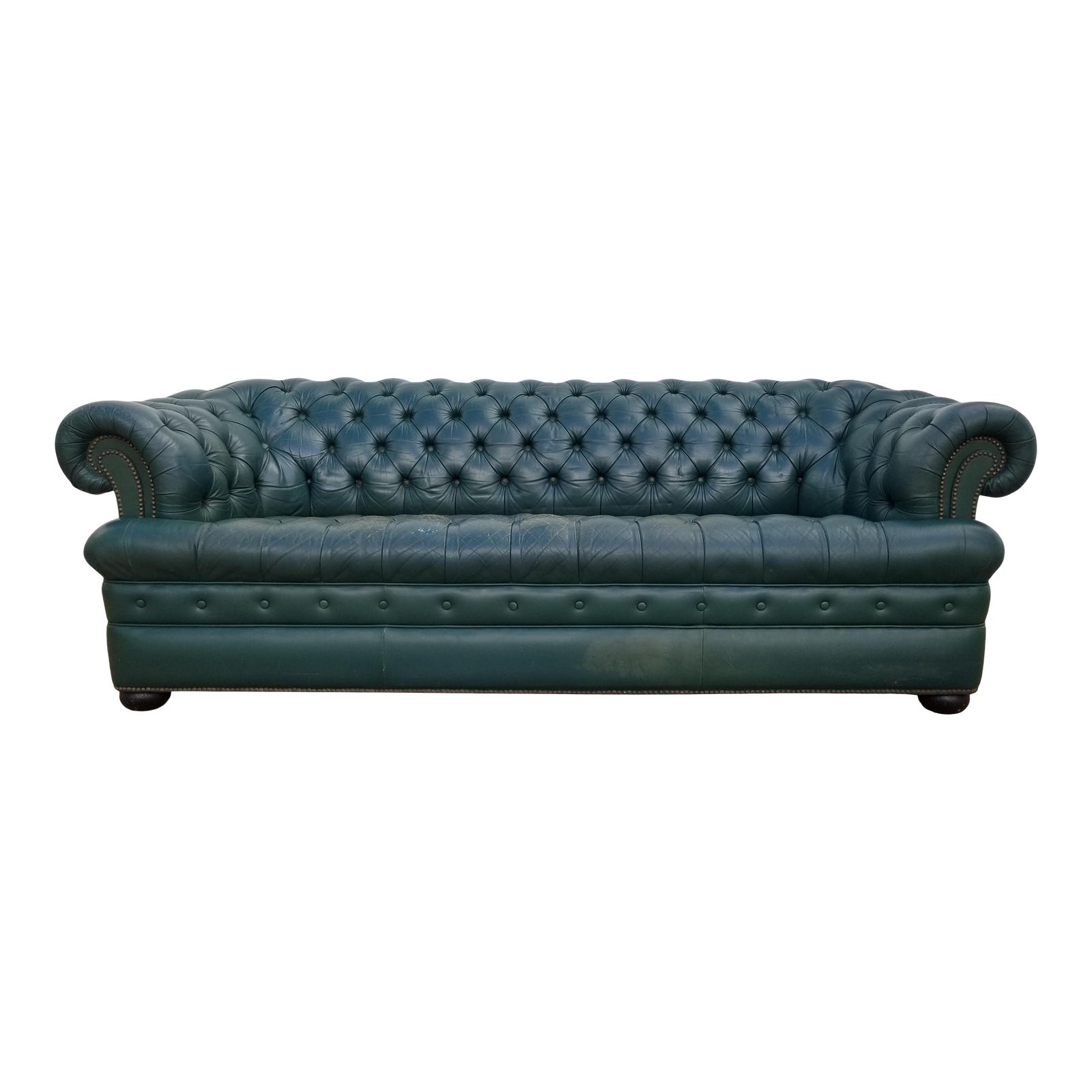 Green Leather Couch Teal Sectional Chesterfield 3 Antique