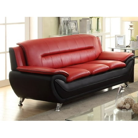 Frady Black And Red Faux Leather Modern Living Room Sofa