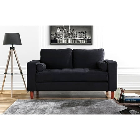Walmart Small Spaces Collection Black Faux Leather Couch W