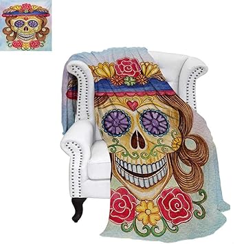 Blanket Custom Rottweiler Day Of The Dead Sugar Skull Dog Fleece